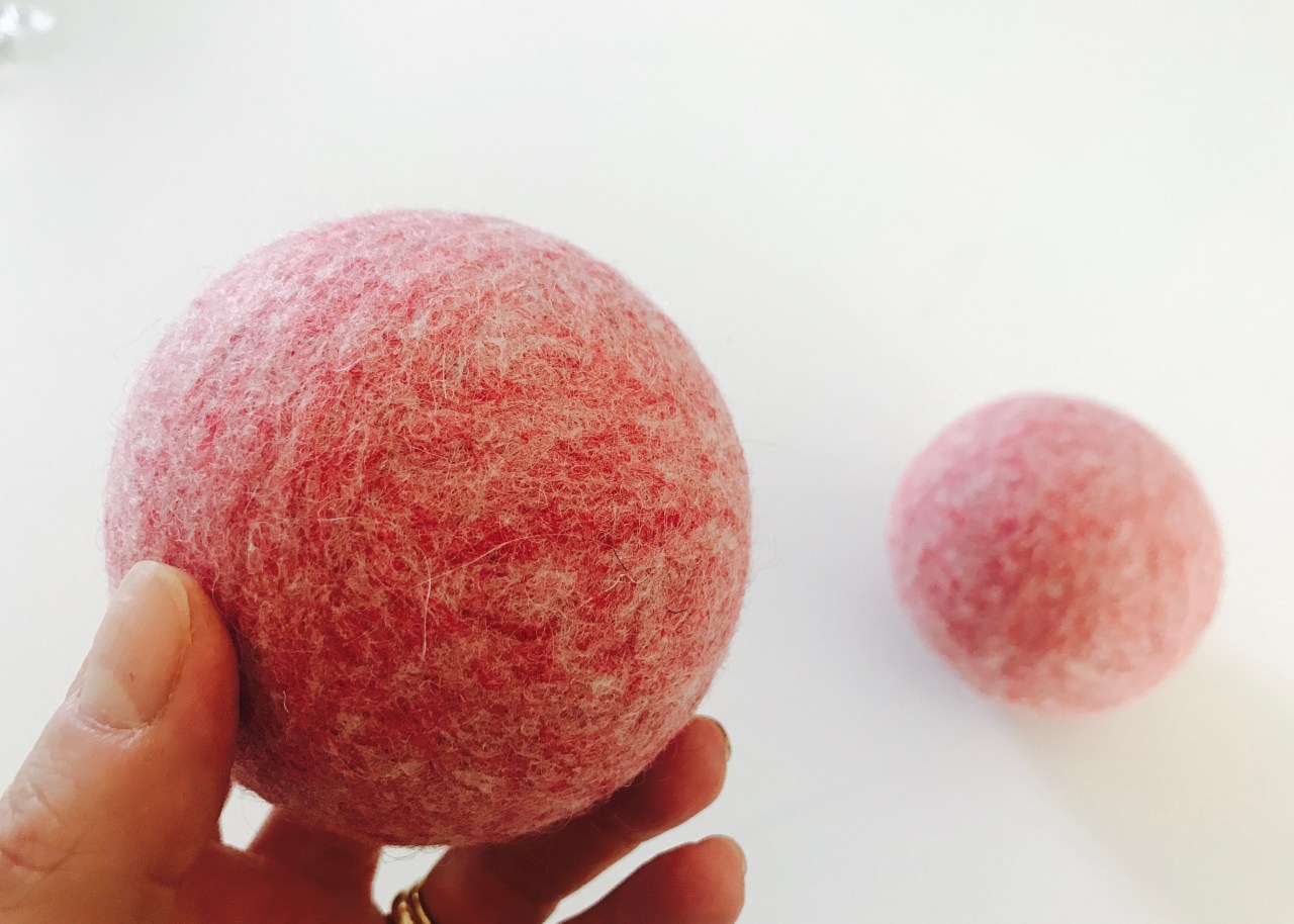 If you’re worried about a red ball in dryer with your whites…don’t. Nothing ever happened to either but if you do make your own make sure your wool is definitively colour fast!