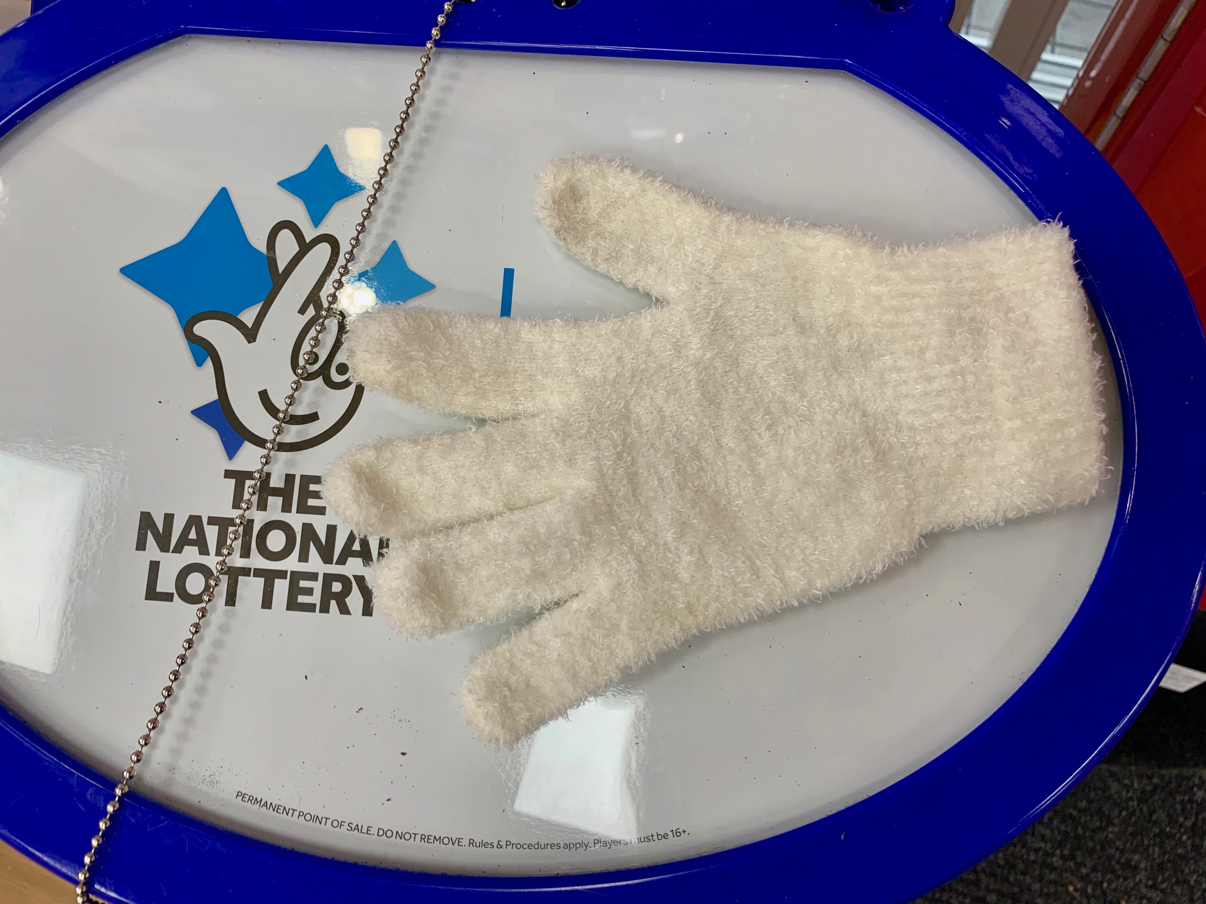I hope this person wins something on the lottery tonight… at least enough to buy another pair of gloves!