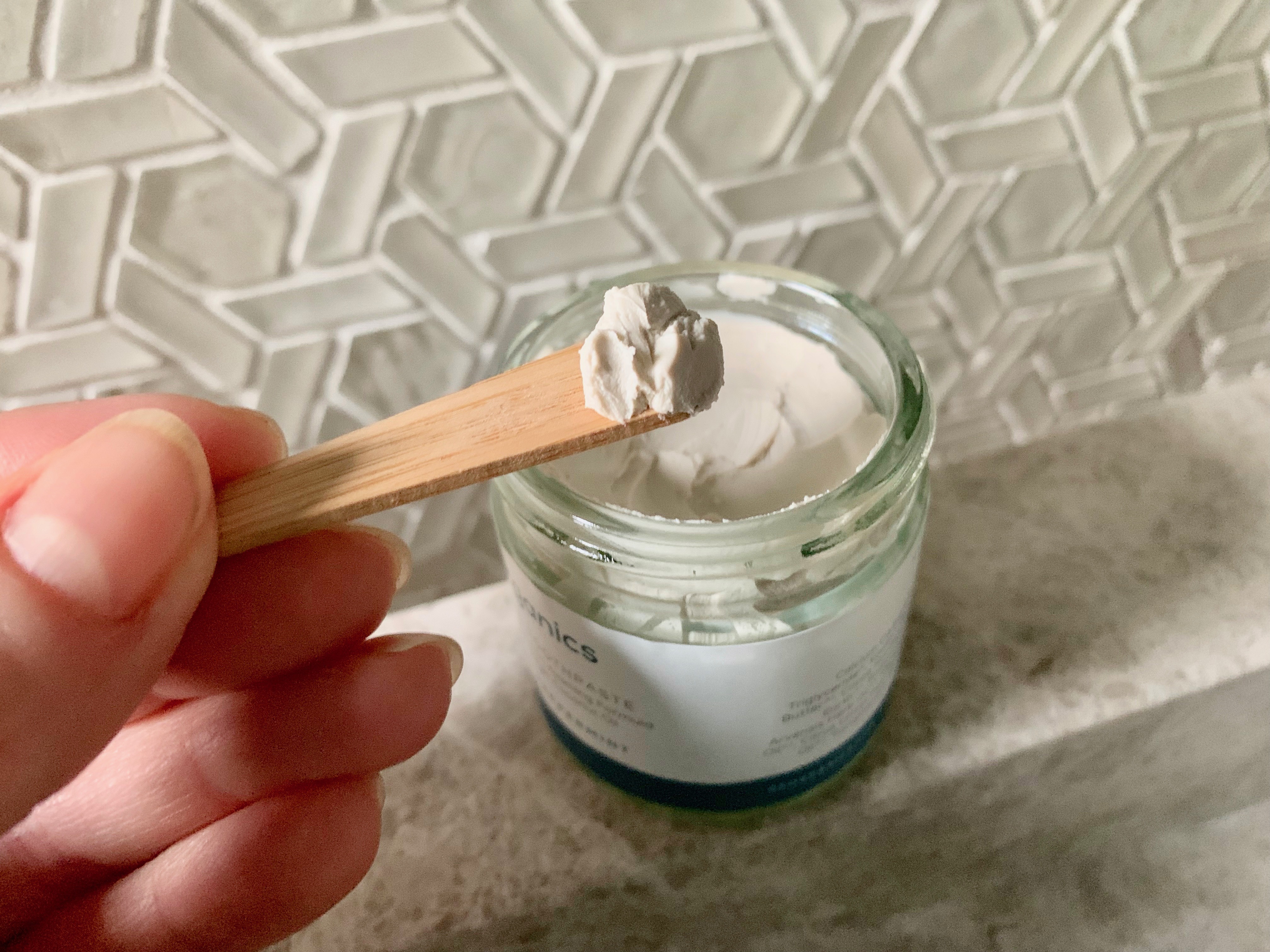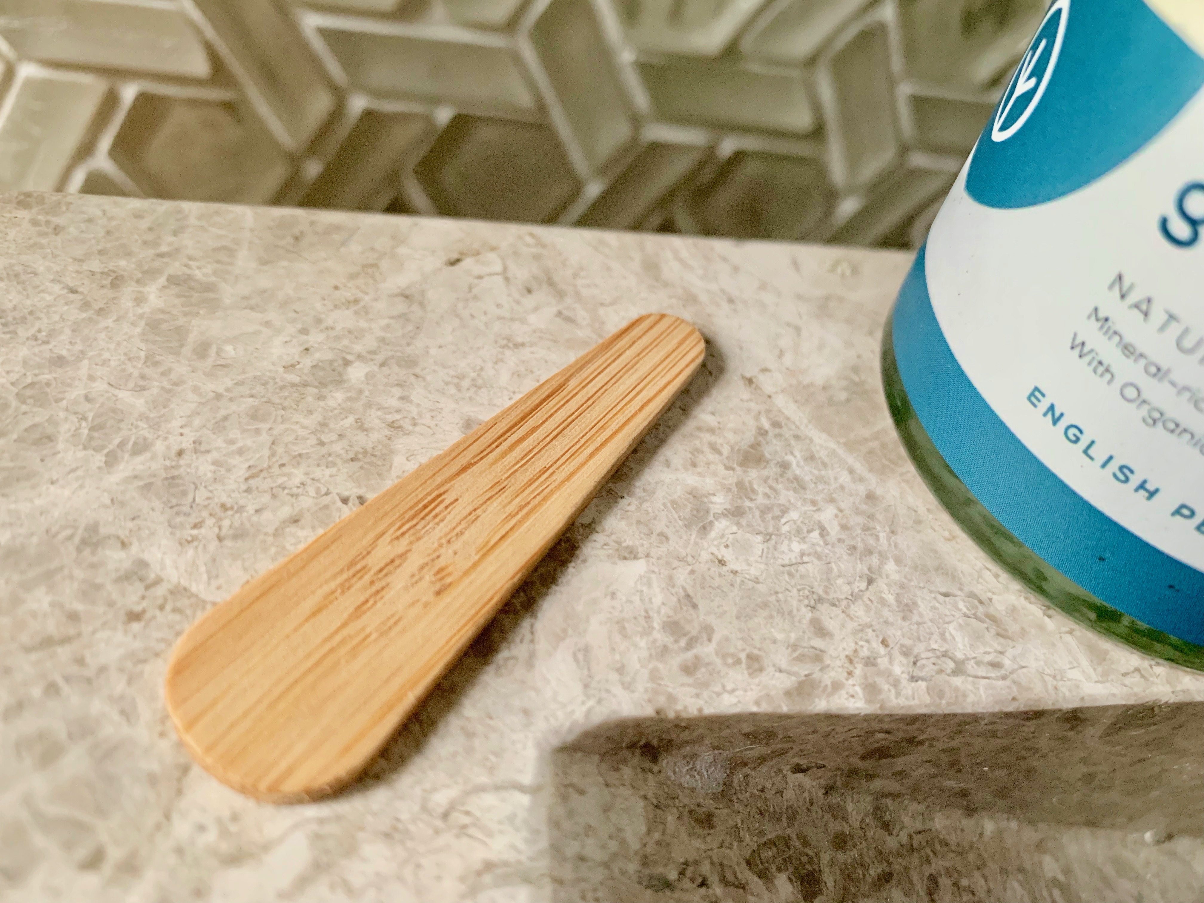 It comes with a tiny bamboo spatula you use to scoop up a pea size quantity and apply it onto your toothbrush – no double dipping here! – and then it works just like a regular, normal toothpaste. The only thing that I found different is that it doesn’t ‘foam’, for want of a better word. We’re so stupidly use to associates ‘foaming’ with cleaning that your brain will tell you ‘there’s no foam’ ‘you haven’t used enough’ ‘is this even working?’ Ignore it. It does work, I’ve been using it for a week now and I’m very very impressed. I wouldn’t go back to a normal toothpaste. My teeth feel clean and my mouth feels fresh.