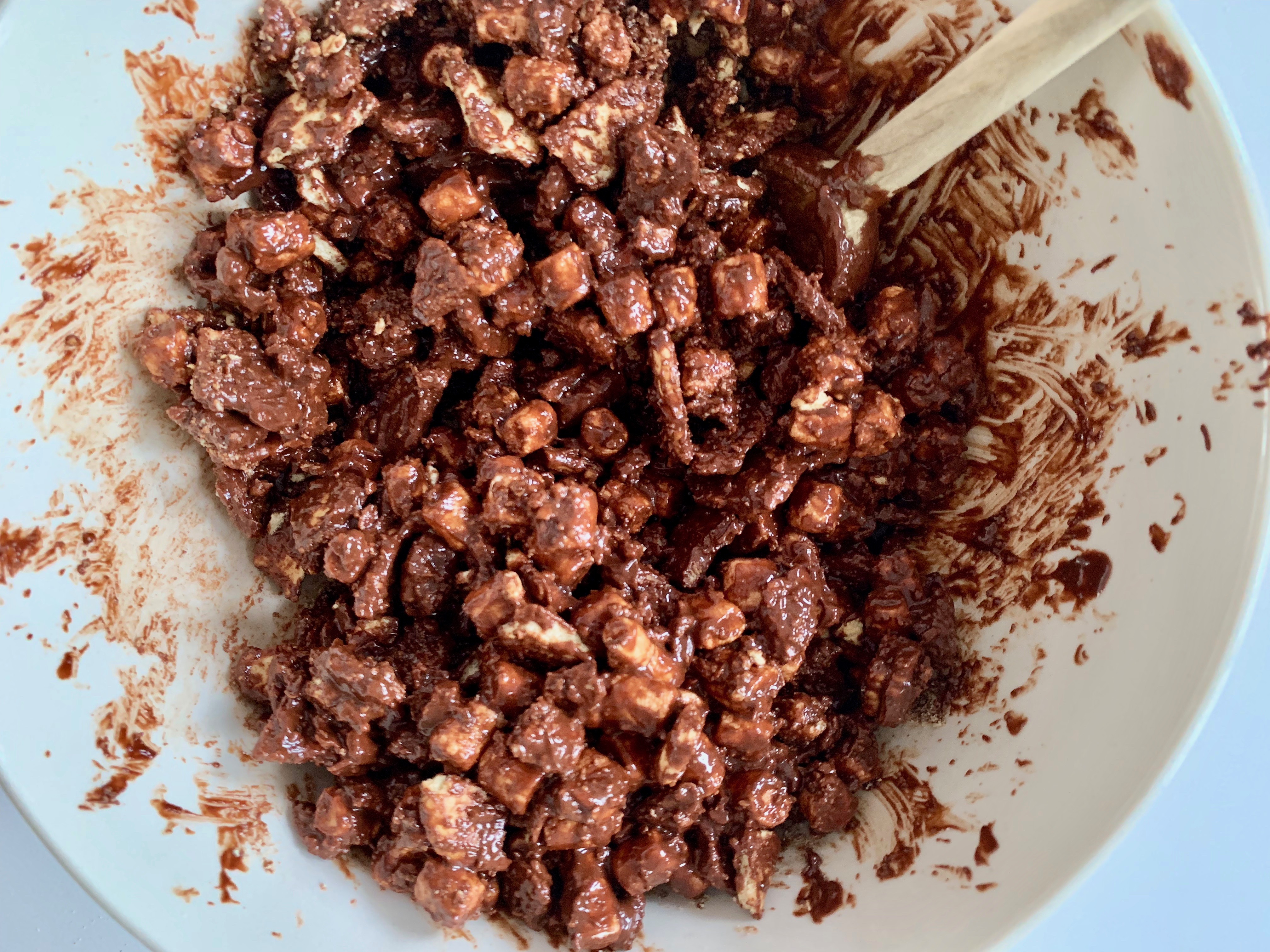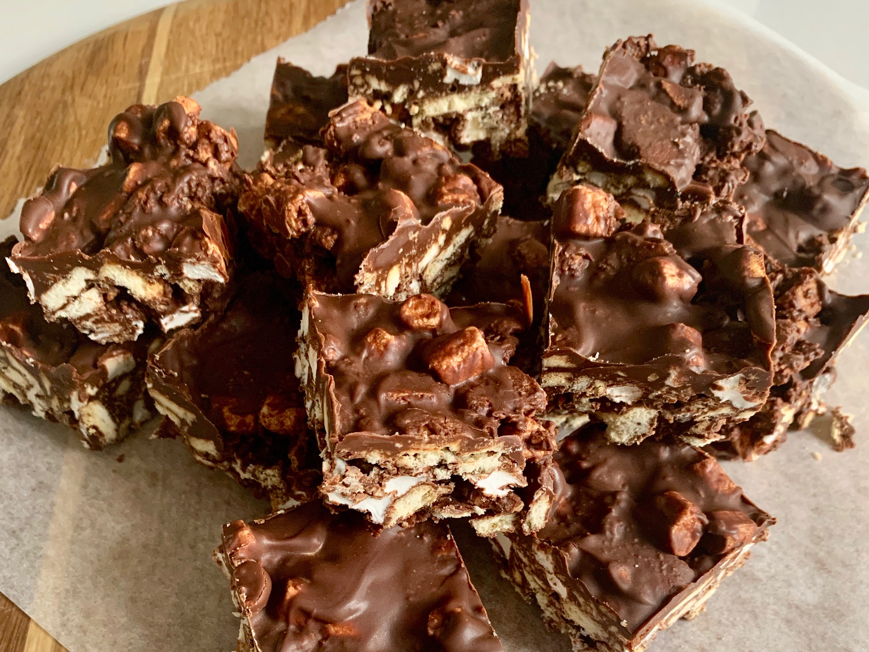 Enter the super quick and super delicious ‘rocky road crunch bars’ from Nigella Lawson’s book Nigella Express. (or you can find them here).