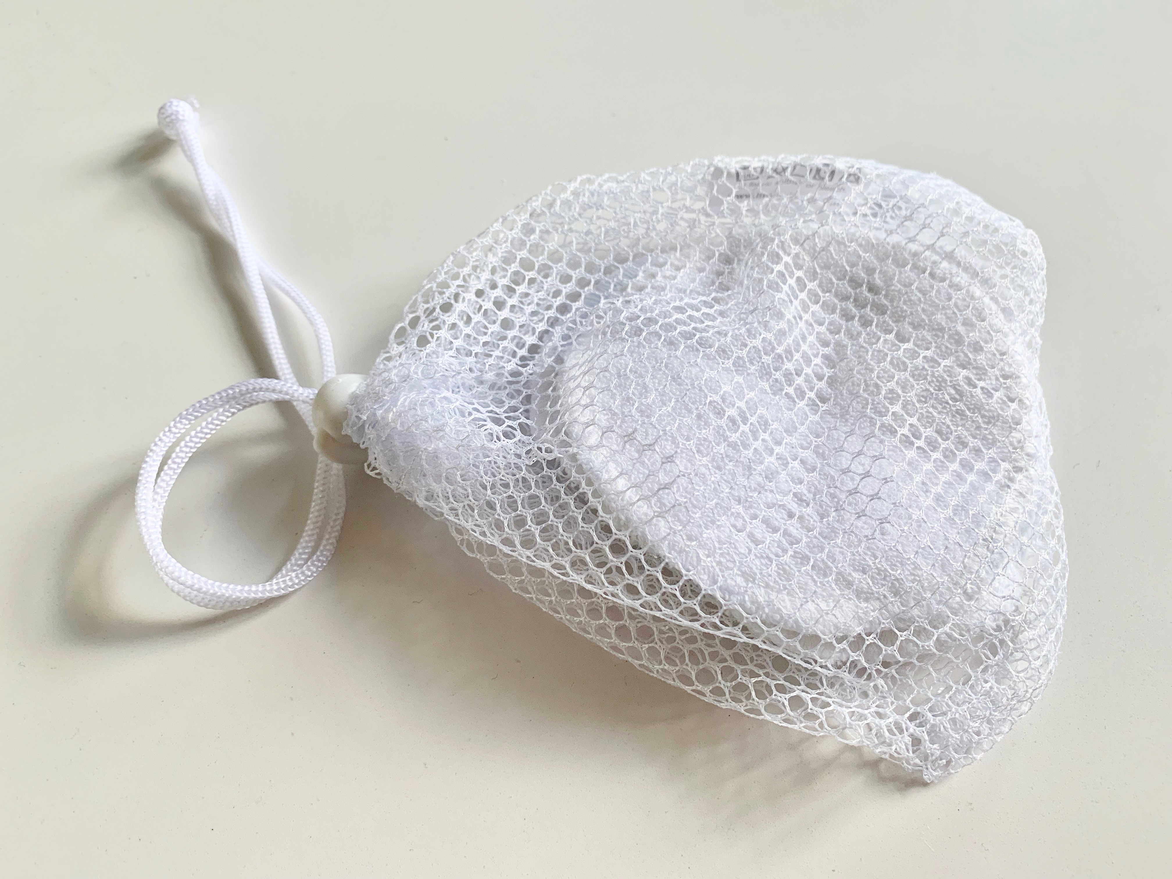They come in a little (plastic… I know… why??) bag you keep the dirty ones in, and then throw the whole thing in the washing machine after a few days. They can go into the drier too and come in a pack of ten and so plenty enough for a week’s worth.