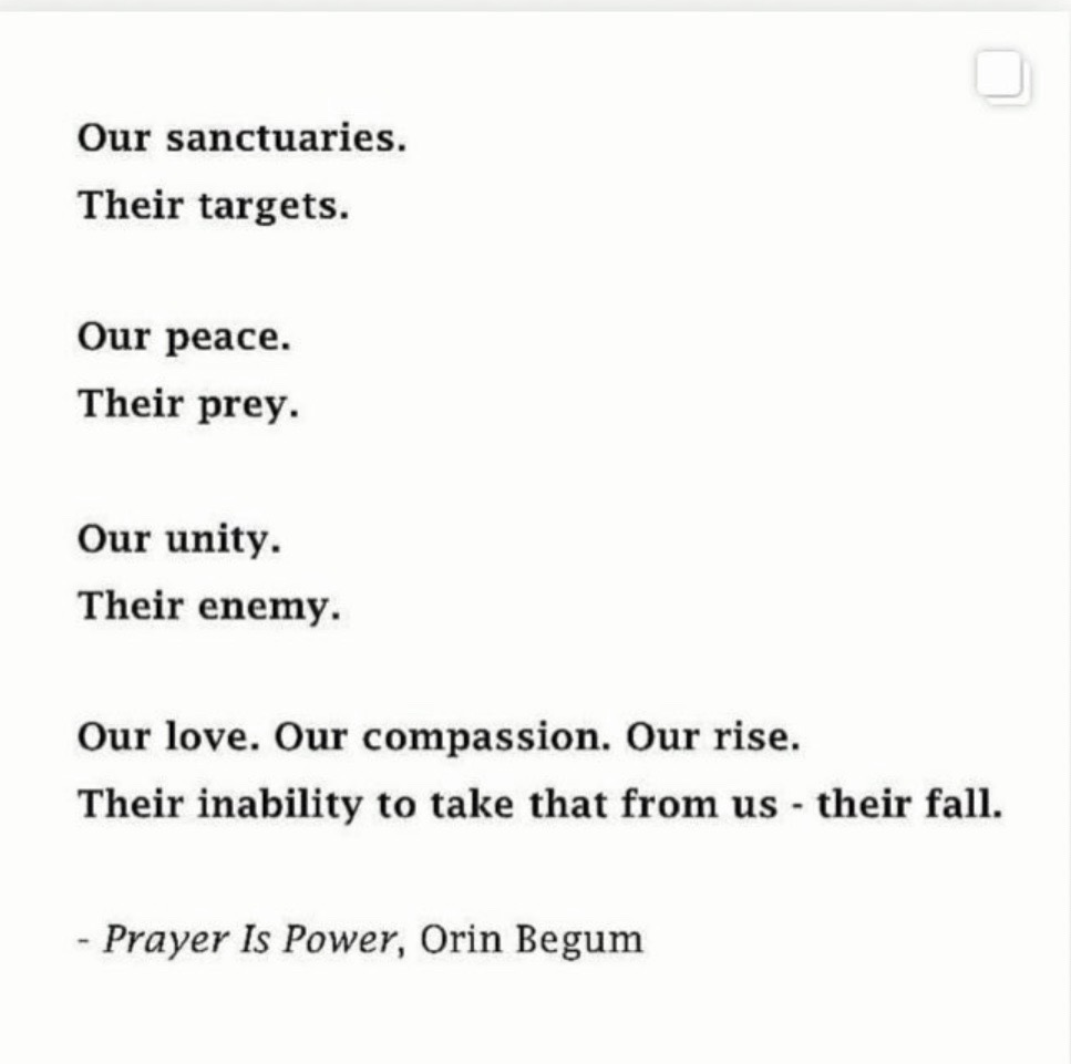 Prayer is Power, by Orin Begum, full time lawyer, part time poet. You can find her beautiful words at poetry_by_oorenie on Instagram.