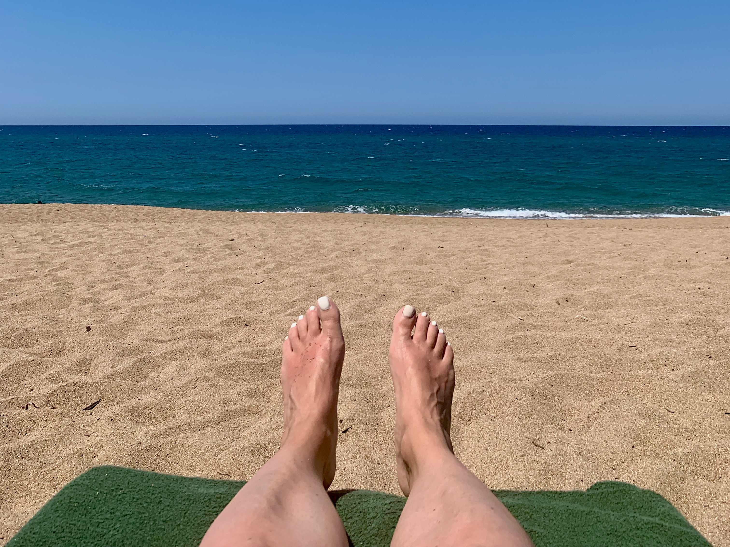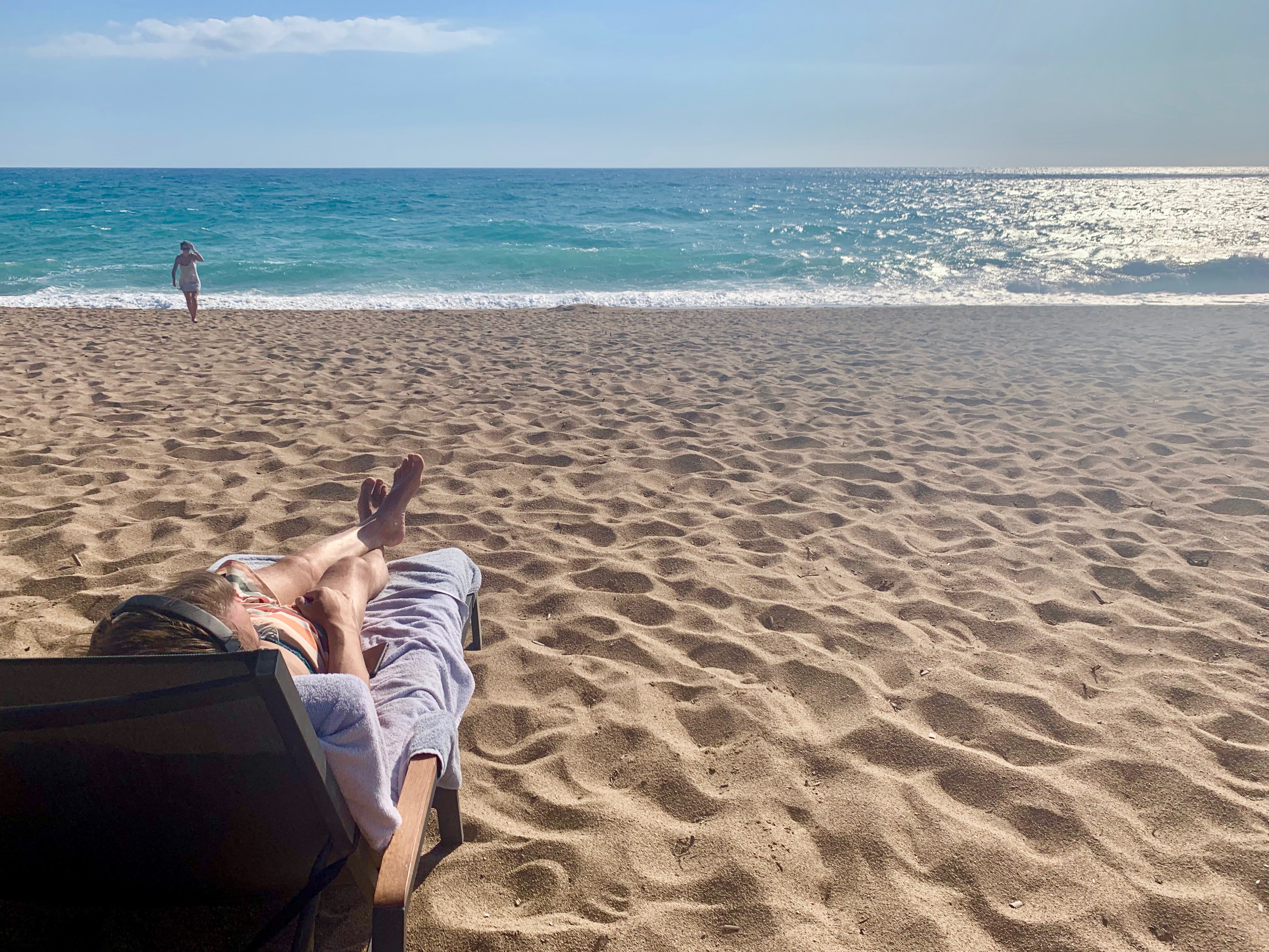 The beach was wide, fully equipped with umbrellas and sunbeds and a bar/restaurant served lovely food and lots and lots of platters of fresh fruit. You could hire all sorts of water equipment… mainly we did this: