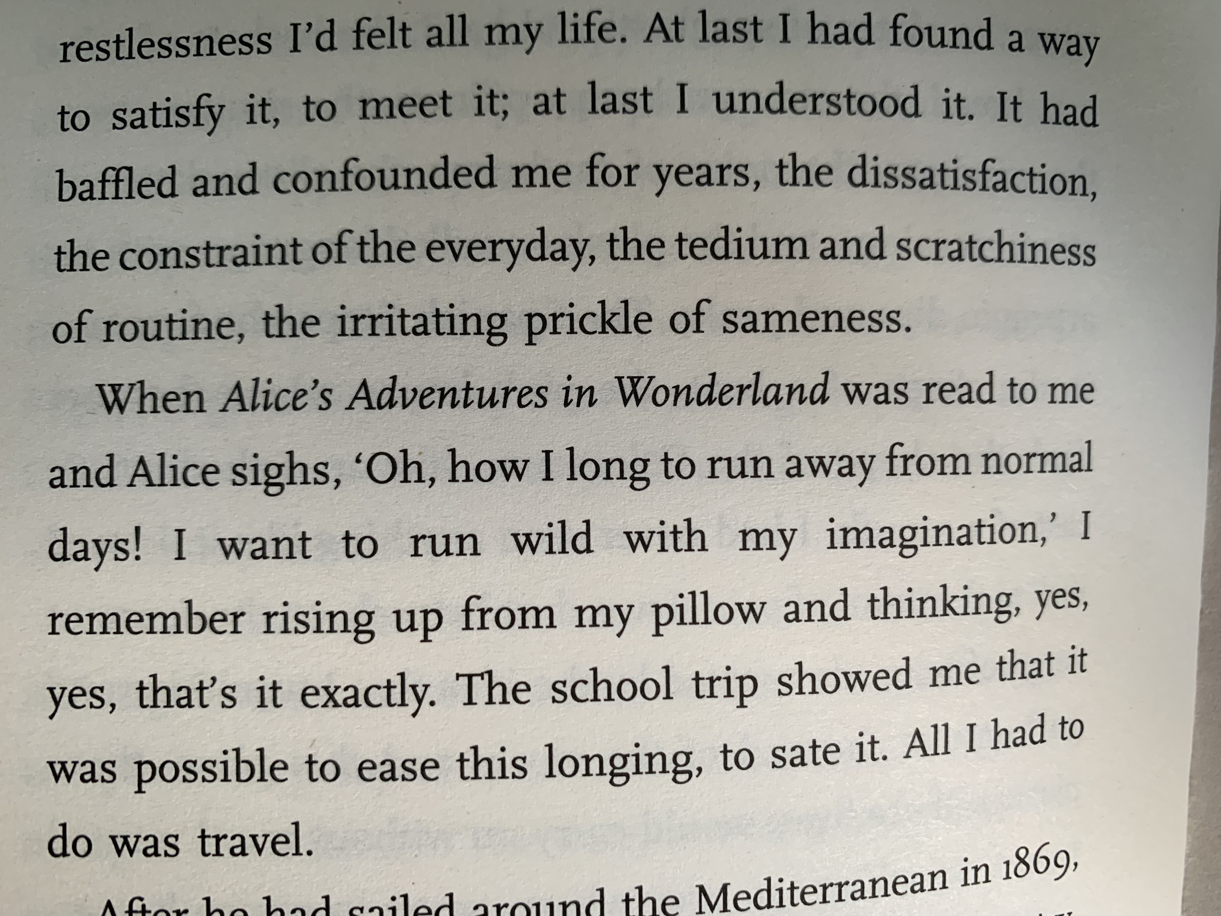 So many of her observations hit home, but no more that when she talks about her restleness and desire, no, need to travel… she writes that after the first school trip (to Rome, in her case):