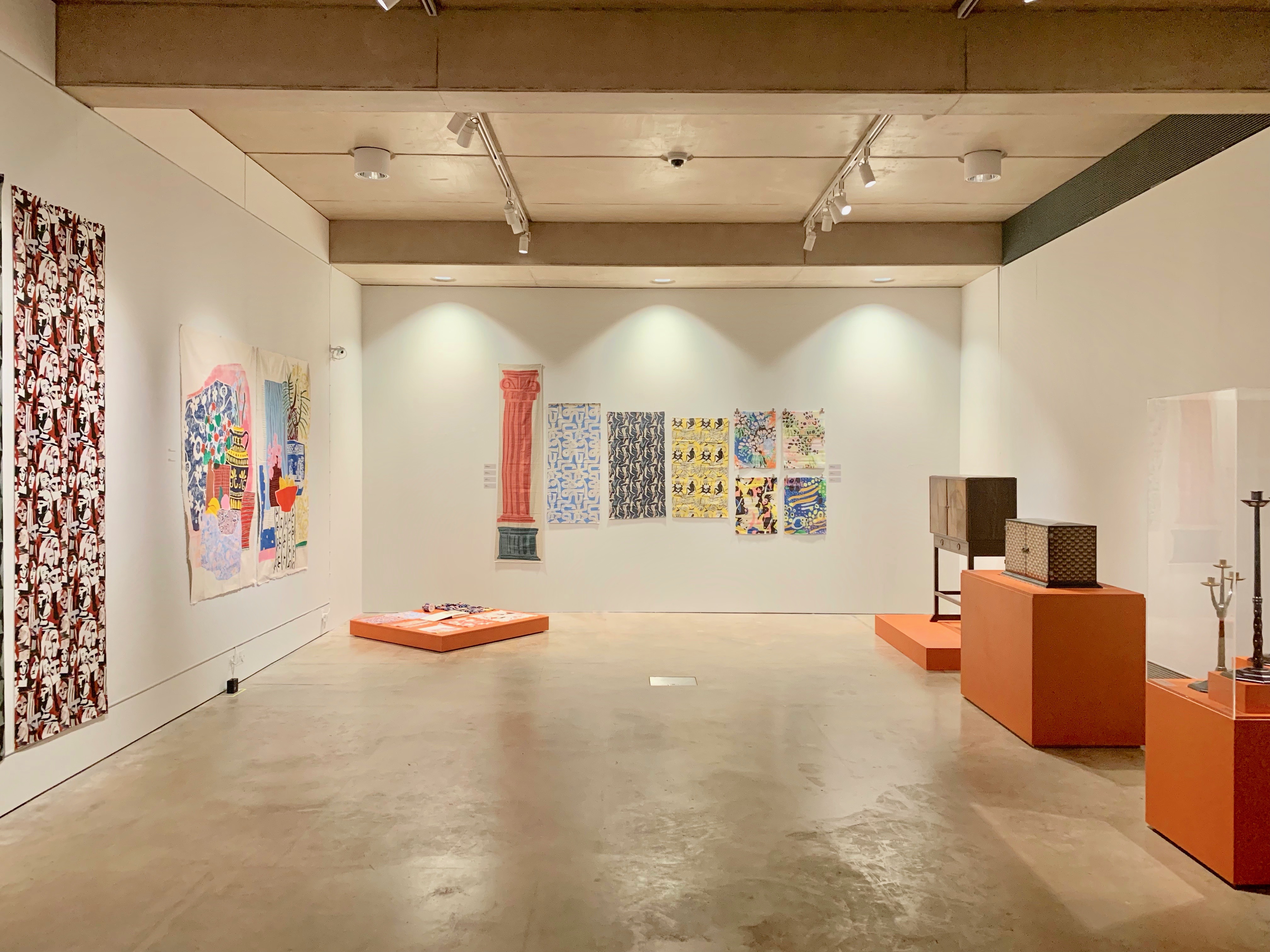A joyous sense of colour, screen printing, mix media, fabric, paper, block printing… all combined with a nod to Matisse, and the Bloomsbury Group…