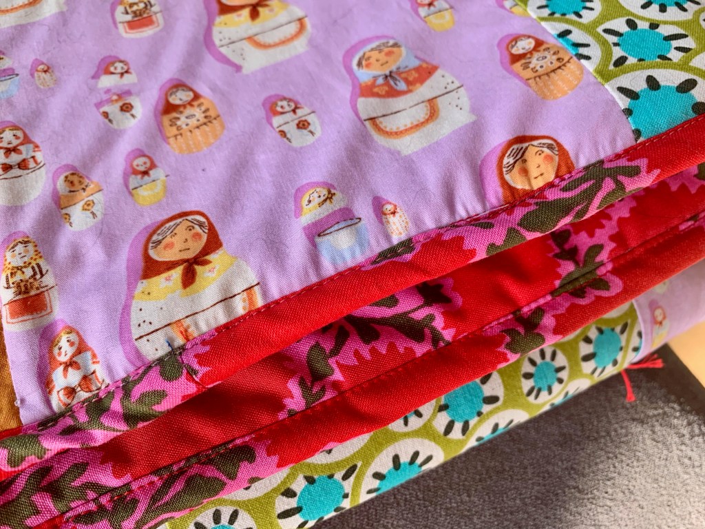 Lovely Monica. I can see fabrics from my own “supply” that have been around for years also. And I still love them all. Won’t that quilt be a lovely addition to your niece’s playtime. Think of all the photos it will land up in! Win win. A memory for you all everytime you look at her playing through the winter months.