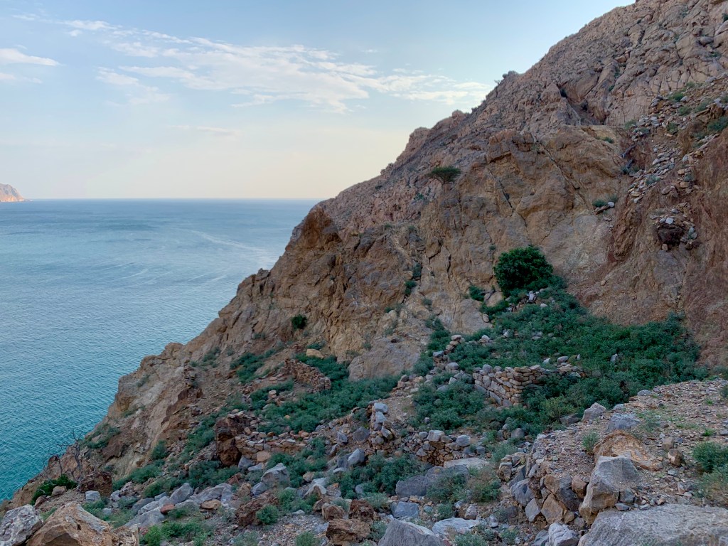 … early morning hiking started on the beach…… past the local village…… then we started climbing…… half way up… (#breezy)…… then up and up to the site of an ancient village…… amazing view from here, if a little remote!…… I’m so curious about how people actually lived this high up… what about water? and food? fish… maybe goats (plenty of those around)… but still…… so many houses…… there was even a cemetery…… higher and higher we went…… the view from the top was incredible… well worth the scramble…… and then back down…… past the date palms grove (grove?)…… and then back home… all before 9.30am… good start to the day!