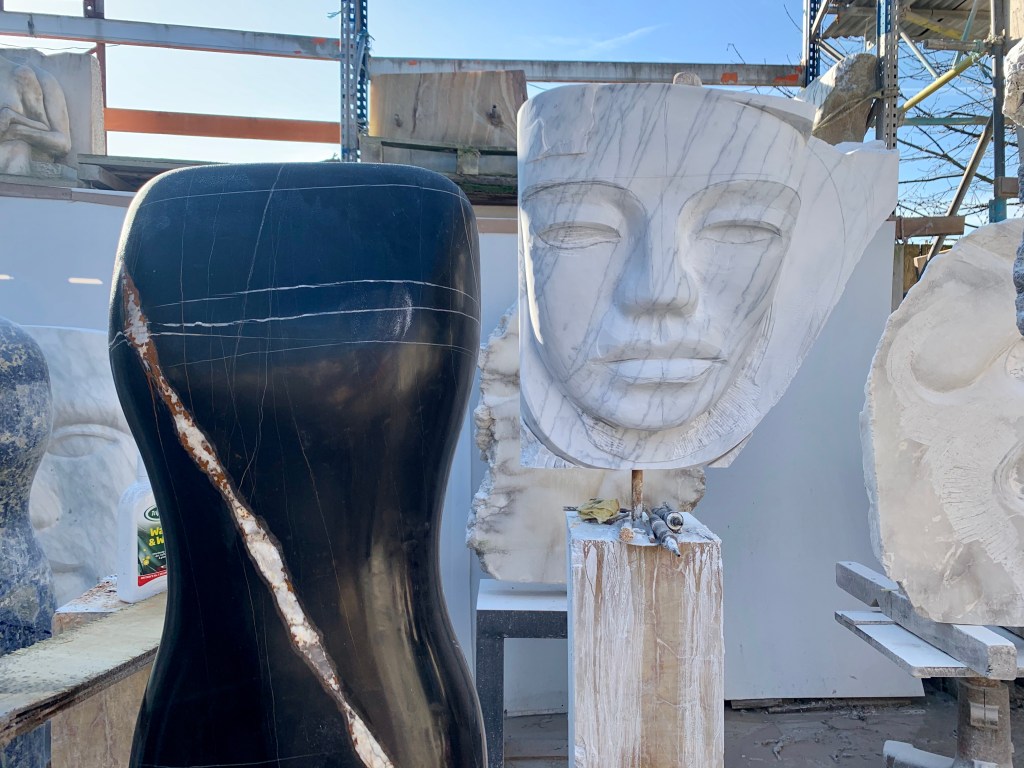 Have you ever been into a sculpture Studio? Nah, me neither. Paul makes LARGE pieces and works with marbles and stone from all over the world. Stunning pieces millions of years old…