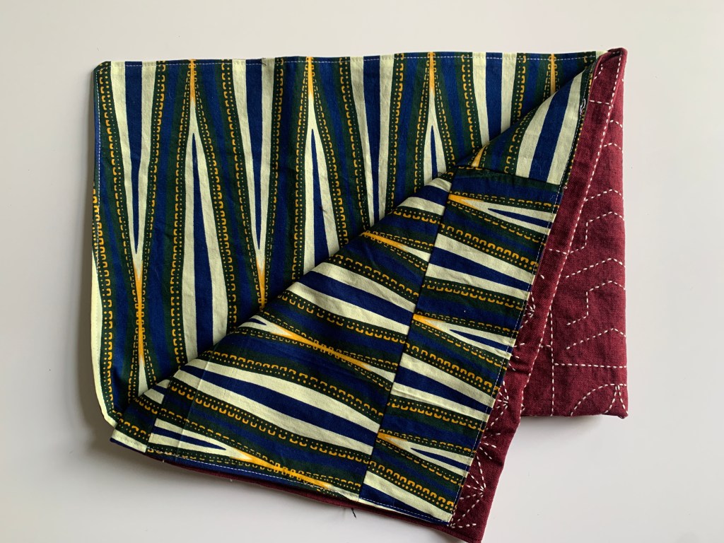 I love the contrast between the Japanese front and the South Sudanese fabric in the back. The rich, contrasting colour looks great together too.